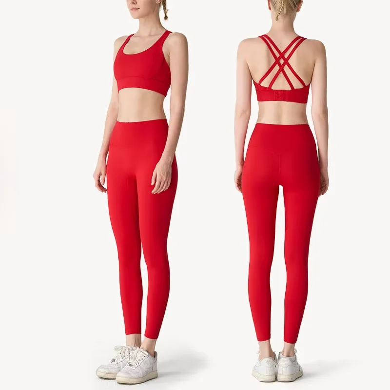 New Hot Sale Factory Direct Women Yoga Set Sexy Cross Back Sports Bra Butt Lift High Waist Legging Yoga Suit