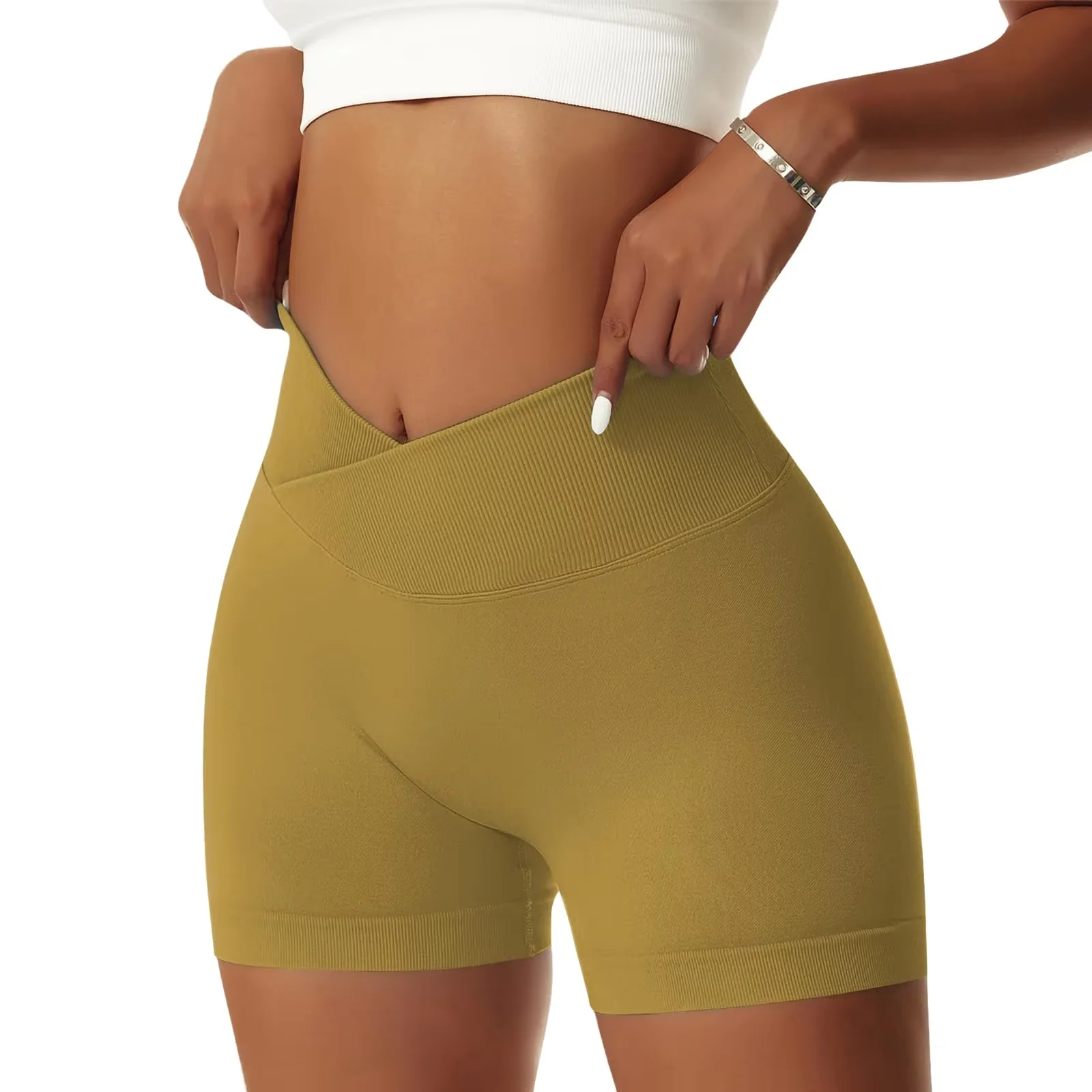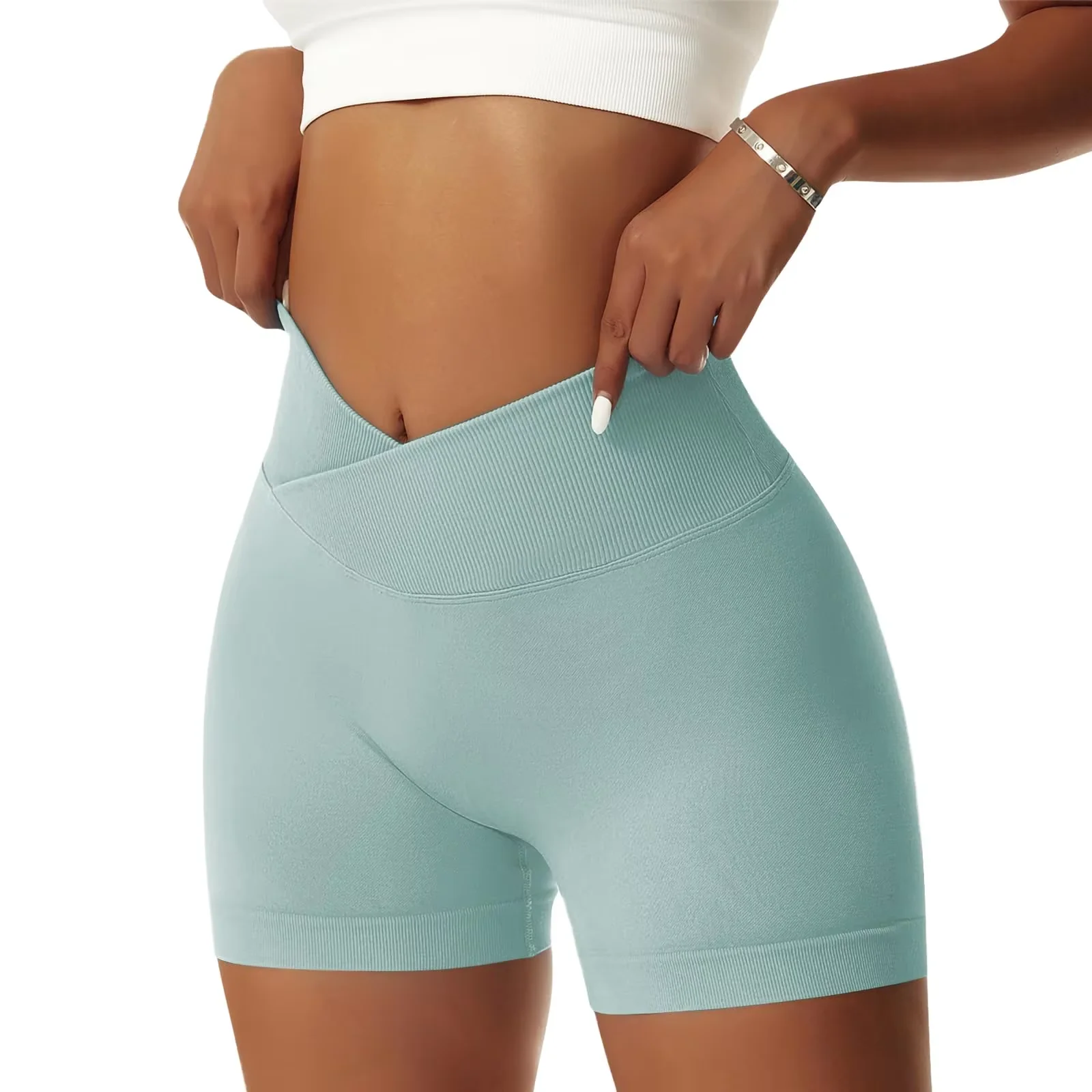 High Waist Gym Spandex Shorts Breathable Workout Leggings Scrunch Butt Seamless Wide Waistband Sports Yoga Shorts for Women